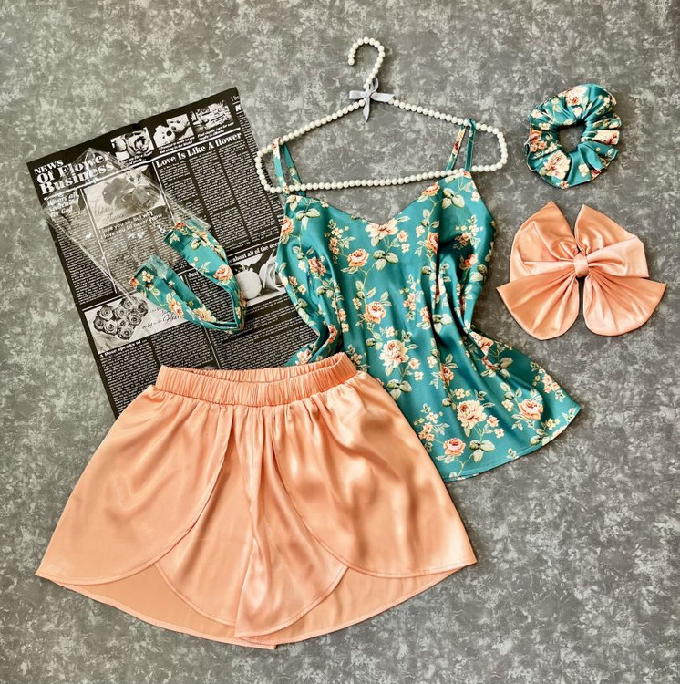 ست۴ تیکه تاپ و شورتک زنانه ساتنLxپرمه