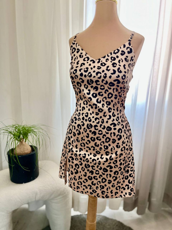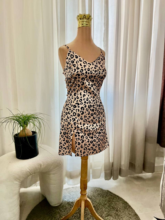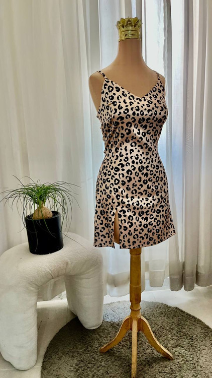 پیراهن زنانه ساتنLx طرح پلنگی مجلسی پرمه