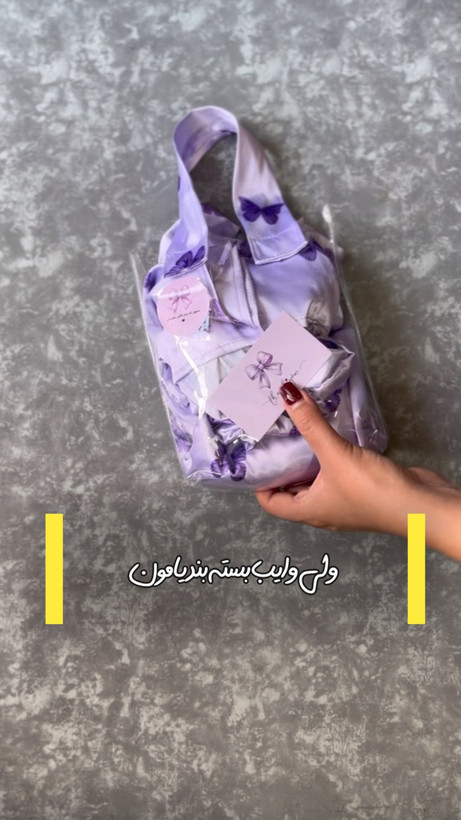 ست ۶تیکه تاپ و شورتک ساتنLx طرح پروانه بنفش پرمه