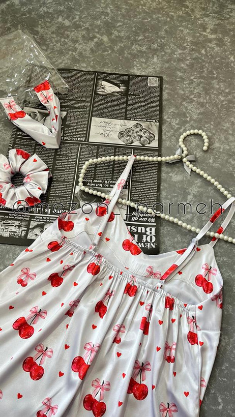 ست۴ تیکه تاپ و شورتک زنانه ساتنLxپرمه پاپیون و آلبالو