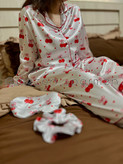 ست لباس خواب مادر وفرزندی بسیار شاد و فانتزی که از جنس ساتن براق و لطیف دوخته شده است. رنگ زمینه لباسها سفید میباشد(آلبالو و پاپیون)