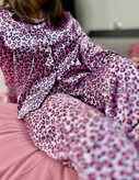 ست لباس خواب زنانه ساتنLxپرمه-طرح پلنگی سرخابی صورتی
