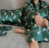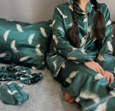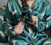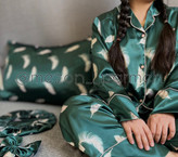 ست لباس خواب مادر و فرزندی ساتنLx سبز با طرح پر پرمه