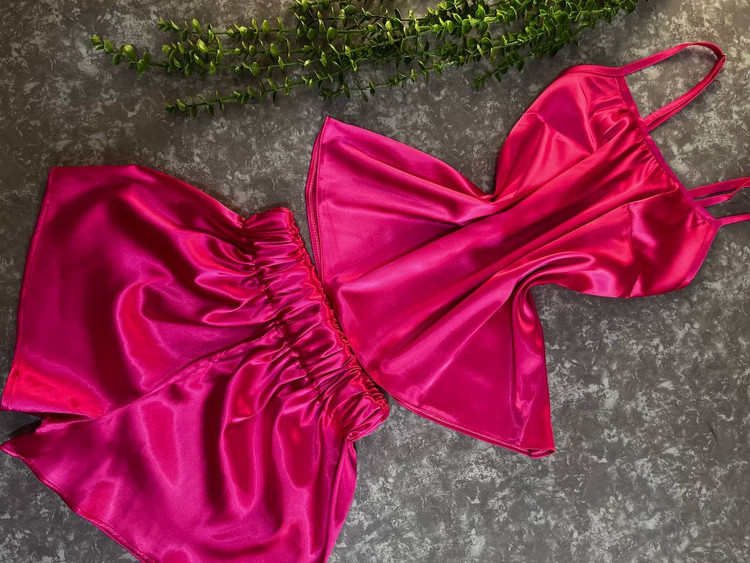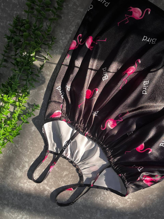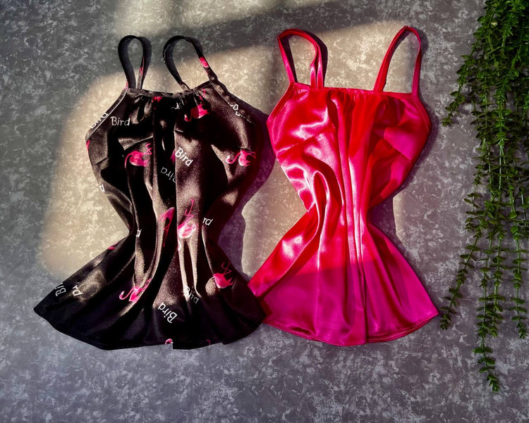 با این ست زیبا و لطیف، استایل شبانه خود را جذابتر کنید! این مجموعه شامل یک لباس خواب ساتن صورتی، یک تاپ مشکی با طرح فلامینگو و یک شورت ساتن هماهنگ است. پارچهی لطیف و براق این لباس، حس نرمی و راحتی را به شما هدیه میدهد و برای شبهای گرم گزینهای ایدهآل است.