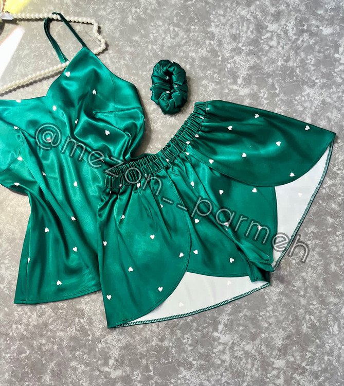این ست زیبای لباس خواب ساتن پرمه ترکیبی از راحتی و استایل را به شما هدیه میدهد. این مجموعه شامل یک تاپ بندی با بندهای قابل تنظیم، یک شلوارک راحت با کمر کشی، یک اسکرانچی هماهنگ و یک کیف شفاف با دستههای ساتنی است. این لباس خواب گزینهای عالی برای استراحت در خانه یا یک شبنشینی دوستانه است!