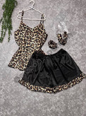ست تاپ و شورتک ساتن زنانه با طرح پلنگی