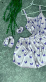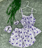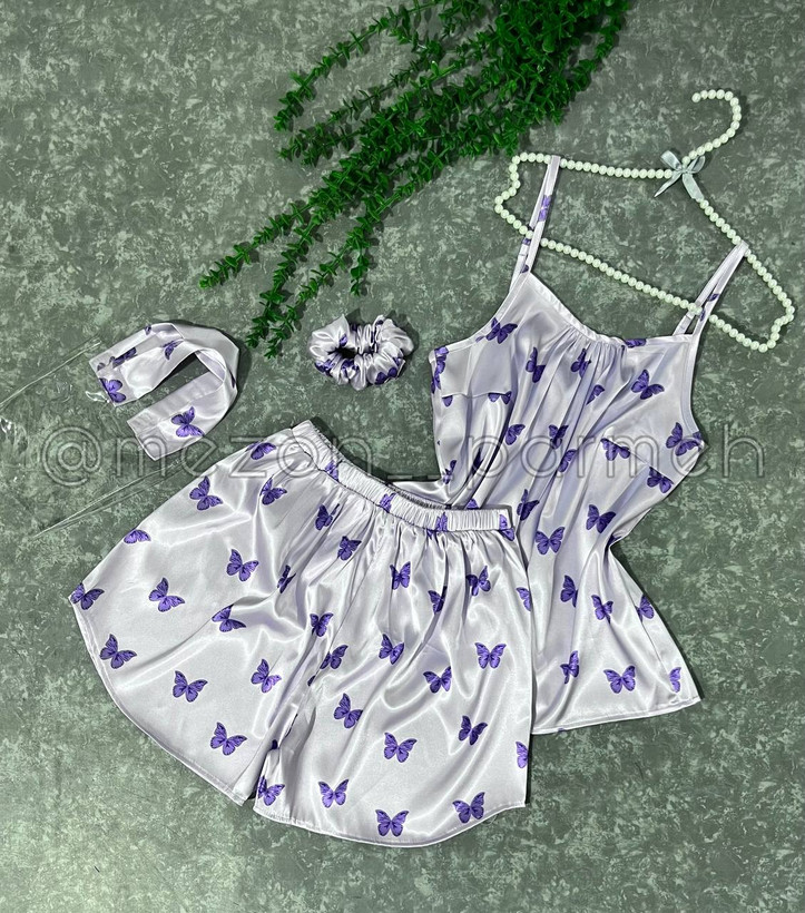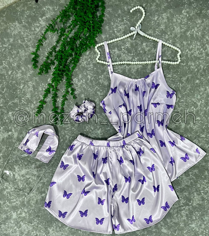 ست ۴تیکه تاپ و شورتک ساتن یاسی پروانه بنفش